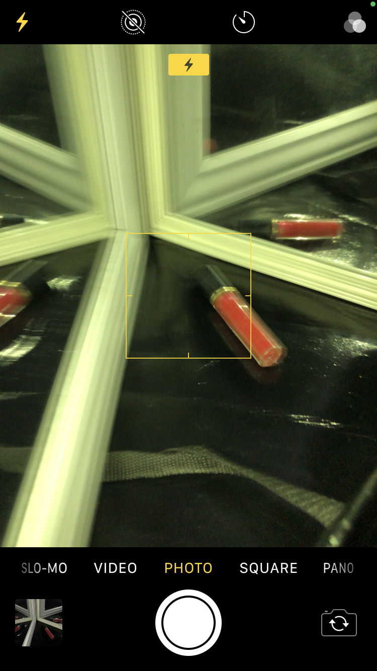In my installation, I am exploring the reflection parts of this narrative and vision. I created a fractal reality space with mirrors and dark surfaces that contort our perception of physical space. Where do the reflection of light begin and the physical object end? I then threw in lipstick to be an object of desire that is just as elusive as the reality that this space contains. The final aspect of my installation is the metatheatrical, self-reflective element of screenshots of the process of capturing the piece itself which I hope to be a full part of the piece I direct.